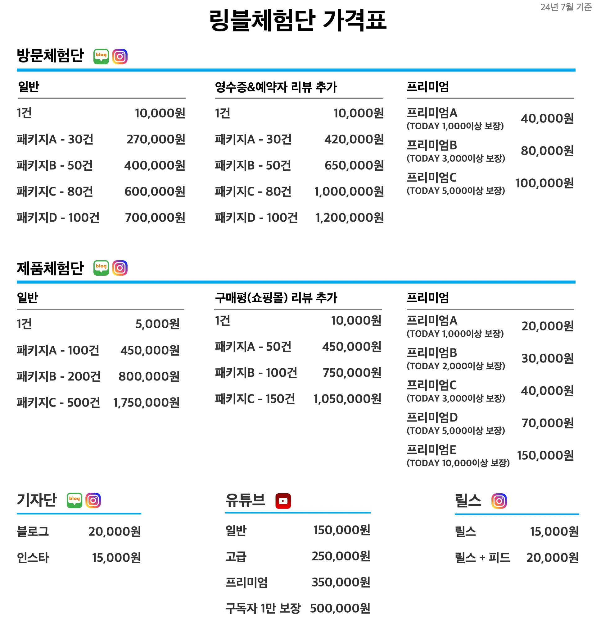 링블에서 “오늘” 모집 중인 체험단은 이~ 렇게 많으니까! 믿고 맡기세요
