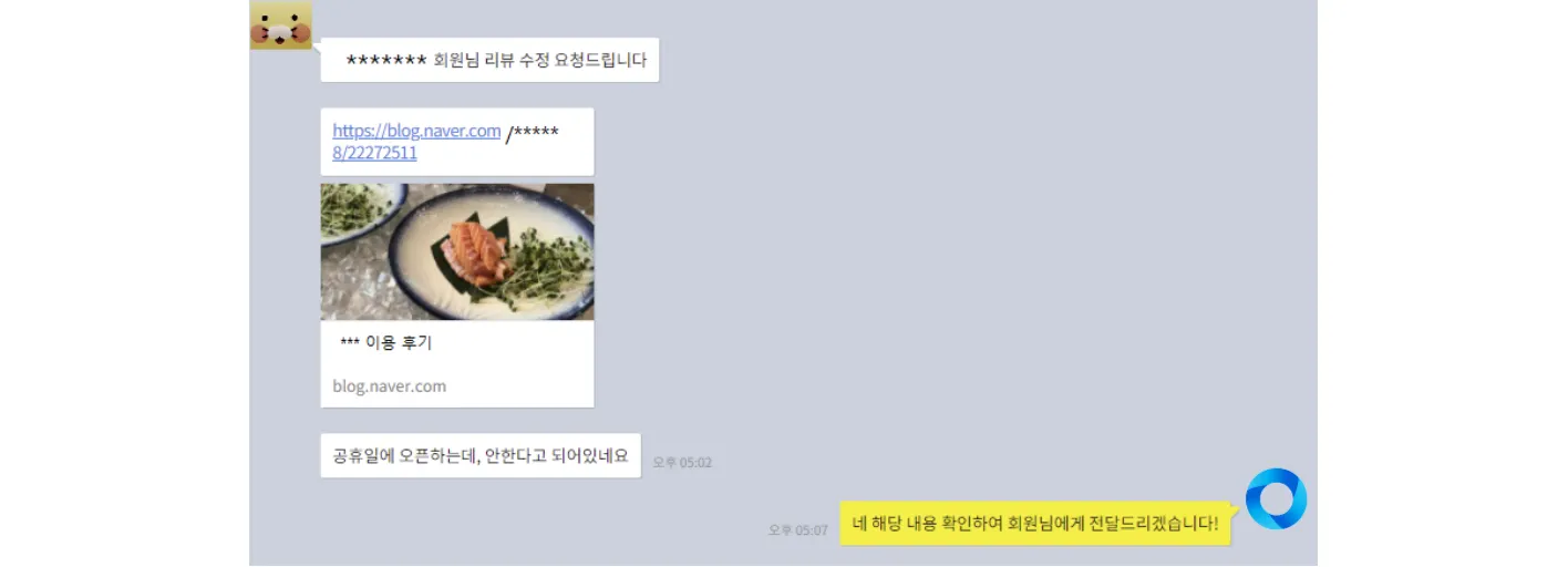 ★ 리뷰를 수정하고 싶으시다구요 ? 저희에게 말씀해주세요 !